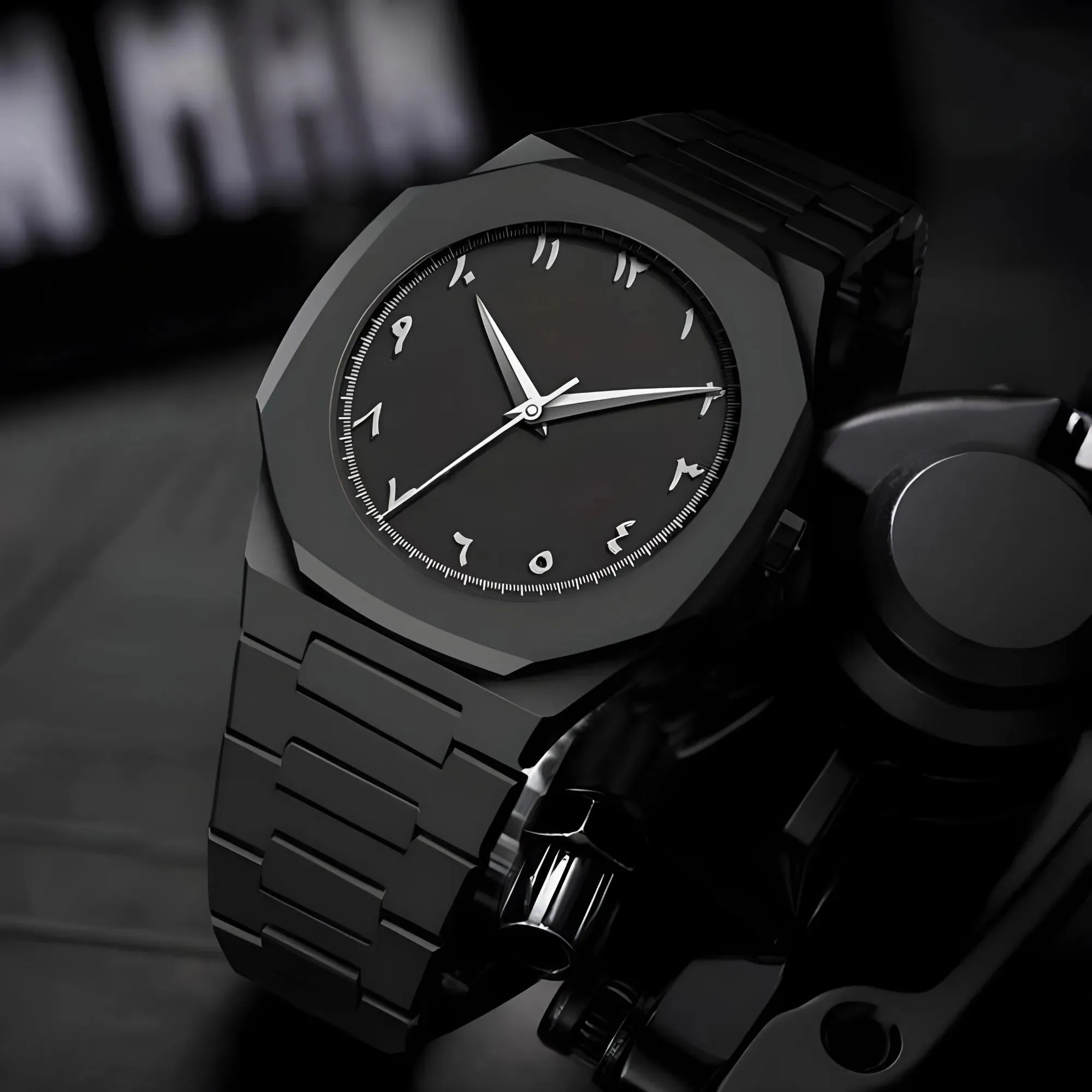 Unique Arabic Numeral Dial – Features a bold and culturally inspired black dial with minimalist Arabic numbers